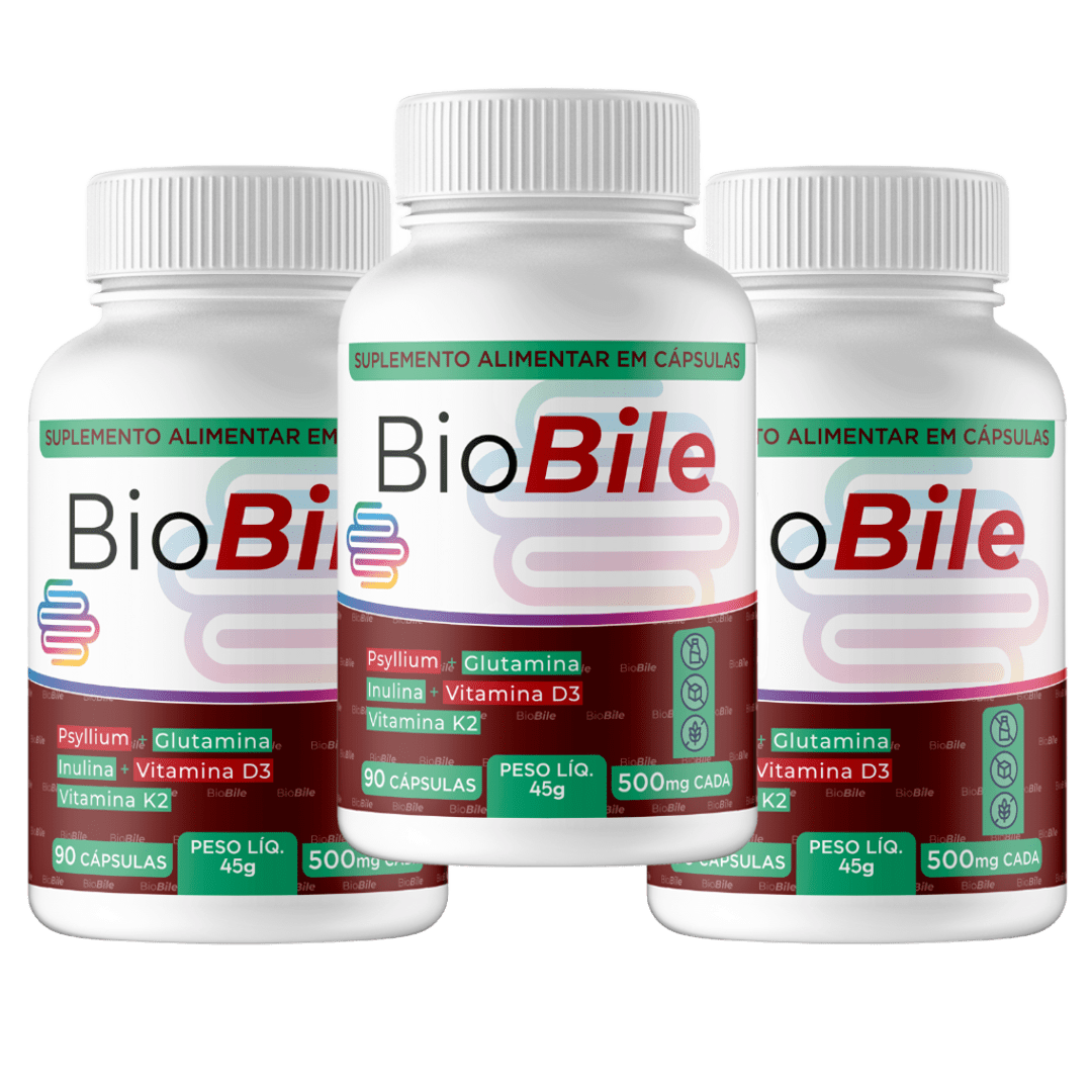 Biobile é um suplemento natural em cápsulas desenvolvido para reativar o funcionamento natural do intestino. Sua fórmula exclusiva combina Psyllium Husk, Glutamina, Inulina, Vitamina D3 e K2, ajudando a melhorar o trânsito intestinal, reduzir o inchaço e promover uma digestão equilibrada — tudo de forma segura e sem causar dependência.